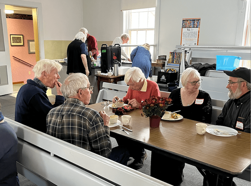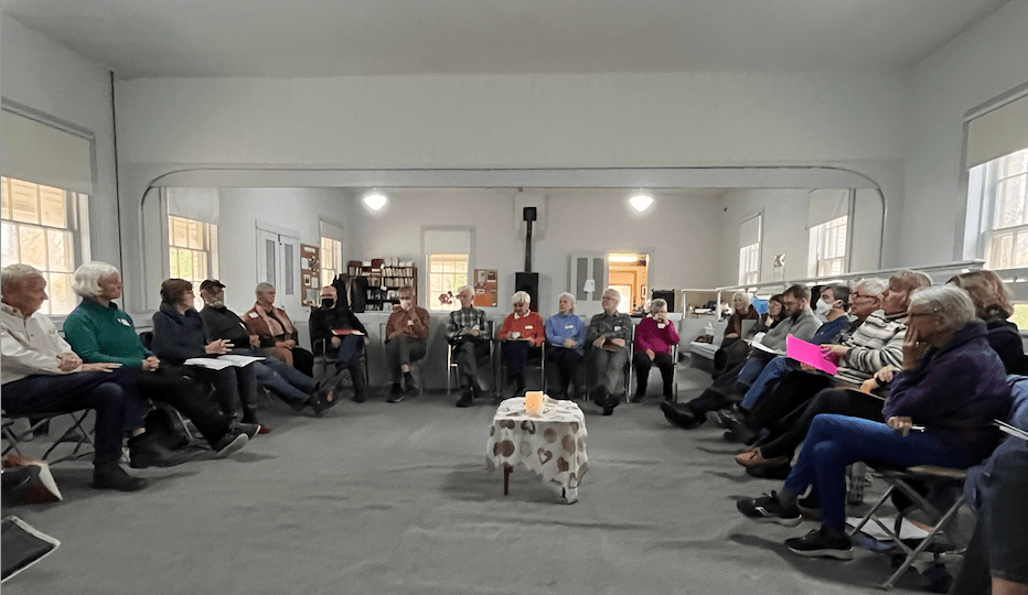 On Monday, April 2, Marilyn Manzer, Canada Yearly Meeting (CYM) Mentoring Clerk from Nova Scotia, and Kwame Barko, CYM trustee from Toronto, joined us at the Coldstream Meeting House for a conversation about CYM and Coldstream. We began with a potluck meal and informal conversation, followed by a broad ranging discussion led by Marilyn Manzer. Ten of us attended in person, with two attenders via Zoom.