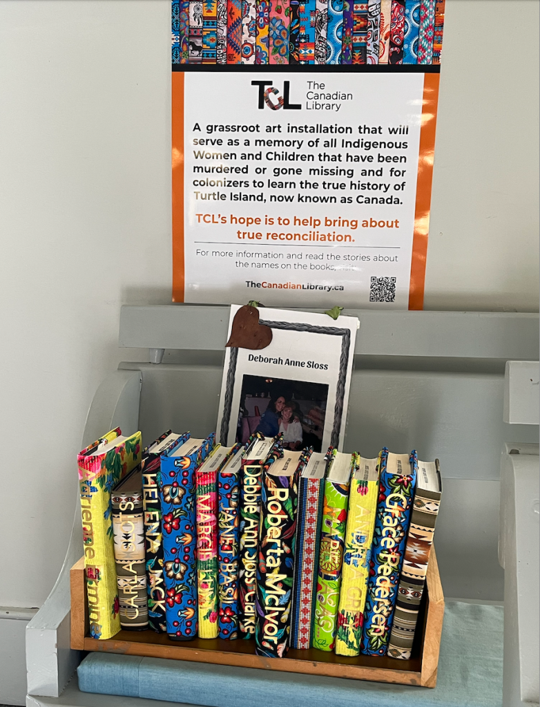Coldstream welcomed about 50 visitors on this afternoon to learn more about Coldstream Quakers and ‘The Canadian Library’ micro galleries project, a project dedicated to raising awareness of Missing and Murdered Indigenous Women and Girls. Visitors were treated to traditional Indigenous refreshments and were able to assist in the work of creating our micro gallery.