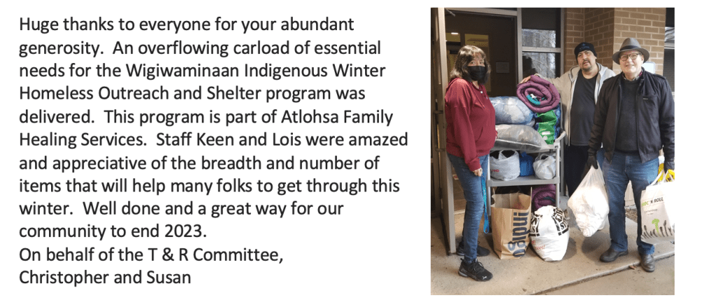 With gratitude we were able to make a $420 a donation to the Zhawanong Womens shelter.